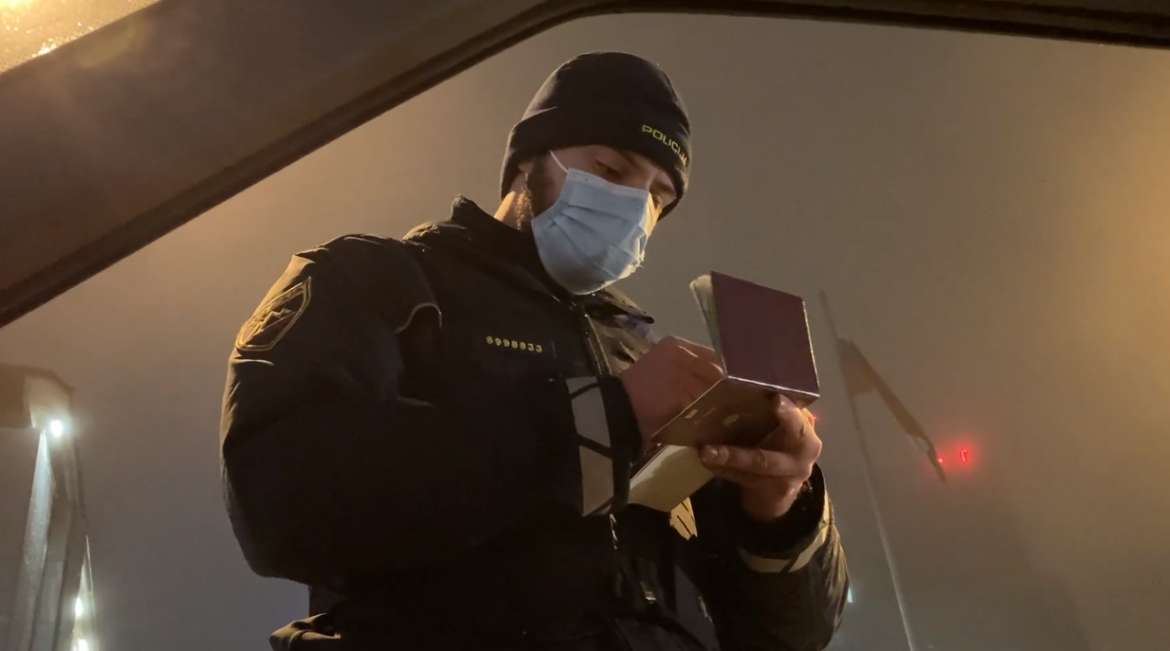 The drivers were honking horns and one of the cars had a bicycle affixed on its roof rack and a slogan saying "Attention. A falling government!". Some of the protesters were IDed by the police.